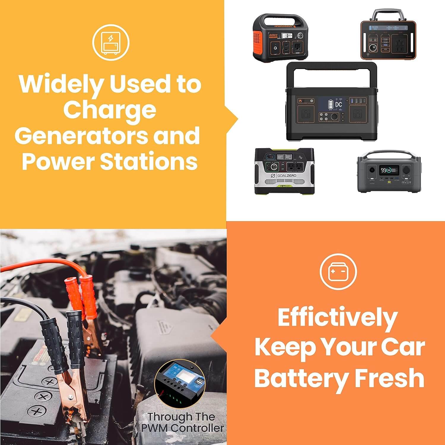 Η συσκευασία περιέχει Controller 20A (12V/24V) ο οποίος έχει ταχυσυνδέσμους, καλώδια κροκοδειλάκια με ταχυσυνδέσμους, καλώδια με ταχυσύνδεσμους με έξοδο DC, 10 διαφορετικά βύσματα κουμπωτά.