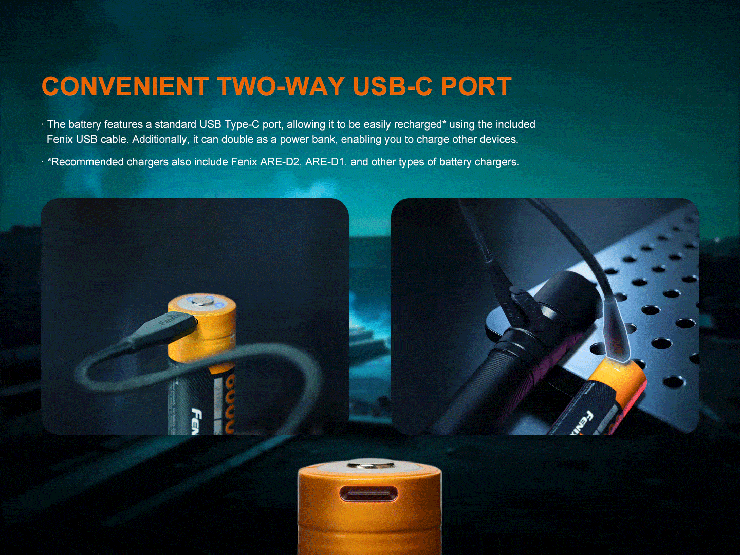 Ακόμα η συγκεκριμένη μπαταρία Fenix διαθέτει ενσωματωμένη θύρα φόρτισης USB για γρήγορη και εύκολη φόρτιση χωρίς την ανάγκη εξωτερικού φορτιστή.
