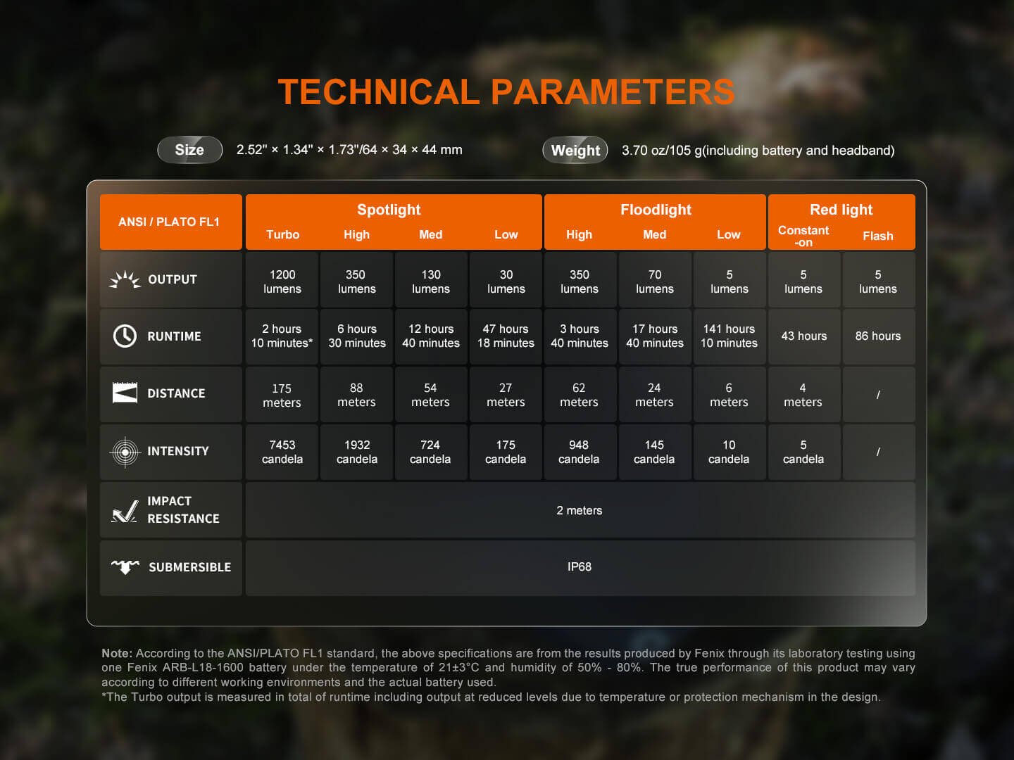 Βάρος: 105 Γραμμάρια συμπεριλαμβανομένης της μπαταρίας και του κεφαλόδεσμου