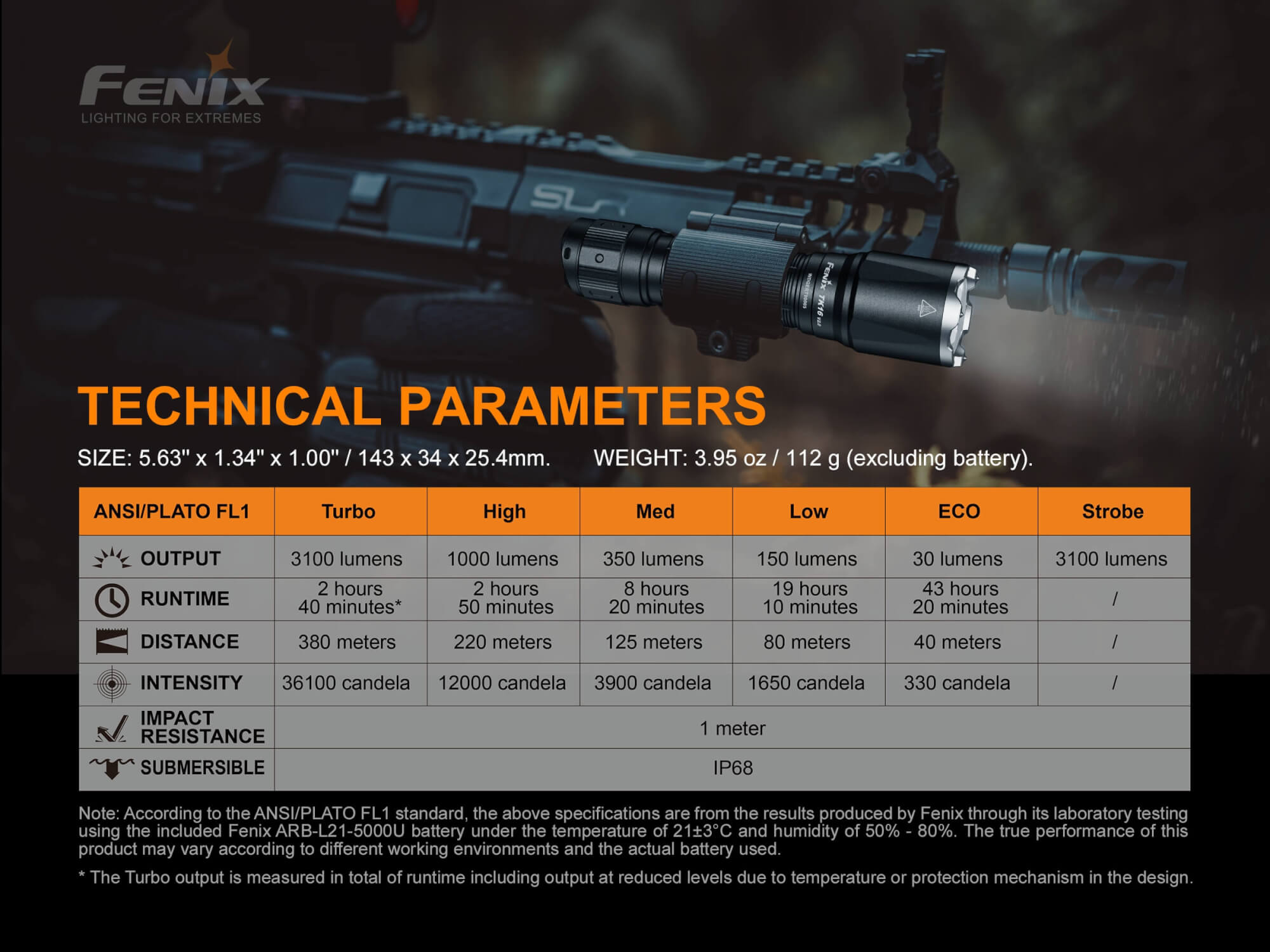 Ο επαναφορτιζόμενος επιχειρησιακός φακός Fenix TK16 V2.0 παρέχει μια ισχυρή δέσμη 3100 lumen που φτάνει τα 380 μέτρα. Ο διπλός ουραίος διακόπτης παρέχει γρήγορη και εύκολη πρόσβαση σε 5 επίπεδα φωτεινότητας και λειτουργία στροβιλισμού. Αυτός ο φακός τροφοδοτείται από μια μπαταρία ιόντων λιθίου 5000 mAh η οποία φέρει πάνω της θύρα φόρτισης Usb Type-C .