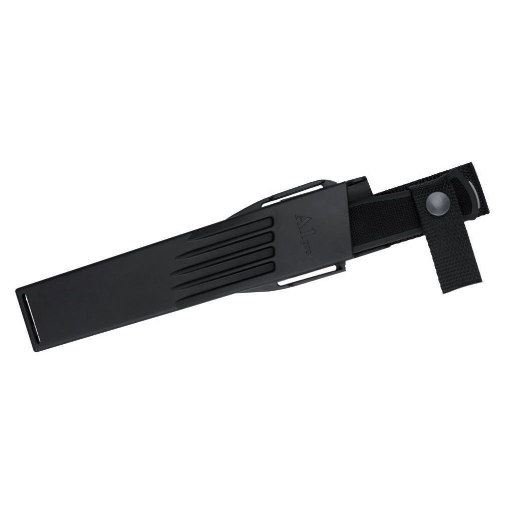 Το μαχαίρι συνοδεύετε με μαύρη θήκη η οποία διαθέτει *διακόπτη ασφάλισης*, με αυτήν την θήκη είστε σίγουρος ότι το μαχαίρι σας θα βρίσκετε στην θέση του όσο δεν το χρησιμοποιείτε.