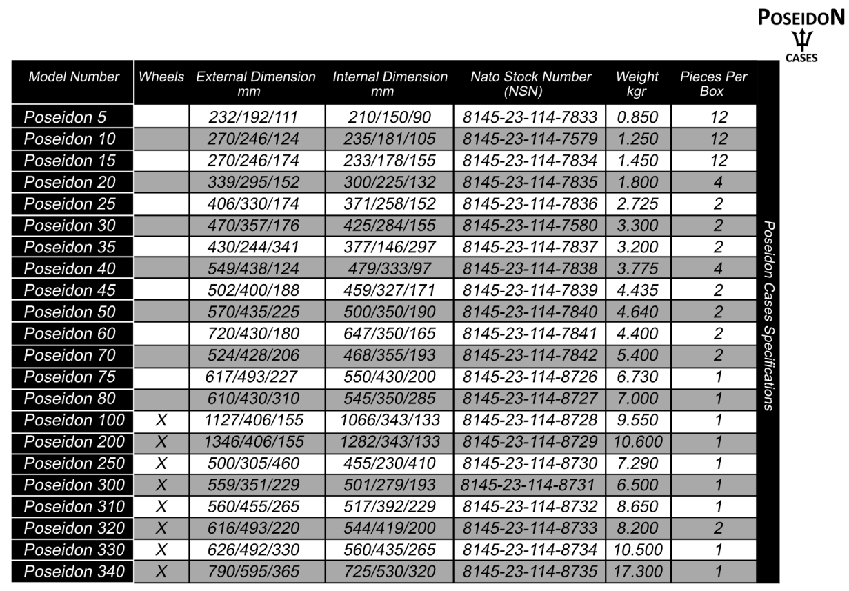 Οι θήκες αποθήκευσης και μεταφοράς Poseidon, είναι κατασκευασμένες από υψηλής ποιότητας πολυπροπυλένιο πάχους 6mm, πράγμα που τις καθιστά πολύ ανθεκτικές στην κρούση. Επίσης, είναι 100% υδατοστεγείς καθώς και απολύτως αεροστεγείς. Παρέχουν πολύ υψηλή προστασία, είτε για μεταφορά είτε για αποθήκευση. Με πτυσσόμενο χερούλι για εύκολη τροχηλάτηση. Όλα αυτά καθιστούν την τροχήλατη θήκη Poseidon 310 ιδανική βαλίτσα αποθήκευσης και μεταφοράς.