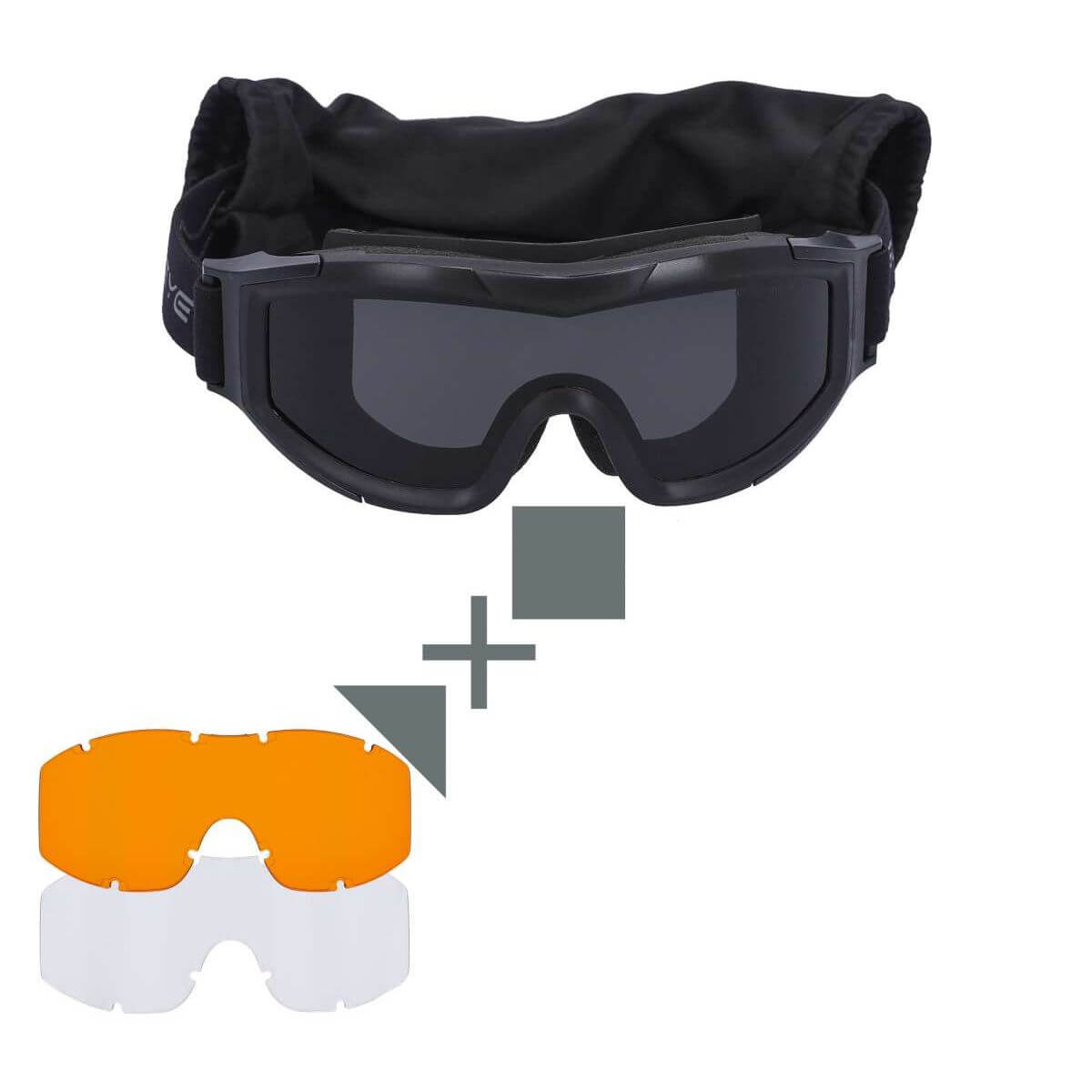 Η Μάσκα F-Tac Pro της SWISS EYE είναι μία από τις καλύτερες μάσκες, με την καλύτερη σχέση ποιότητας-τιμής. Κατασκευασμένο με βάση τα Γερμανικά αυστηρότερα standarts στα επιχειρησιακά οπτικά. Διαθέτουν πολυκαρβονικούς και αντιθαμβωτικούς φακούς βαλιστικού τύπου με μεγάλη ανθεκτικότητα και 100% απορροφητικότητα απο τις ακτίνες του ηλίου χάρις την νανοτεχνολογία που χρησιμοποιούν. Ο πολυκαρμπονικός σκελετός διαθέτει άνετη περιμετρική προσαρμογή στο πρόσωπο. Ο φακός εξασφαλίζει το βέλτιστο φιλτράρισμα στις αντανακλάσεις του ηλίου. Η συσκευασία περιέχει ένα μαύρο, ένα πορτοκαλί και ένα διαφανές φακό οι οποίοι εναλλάσσονται πολύ εύκολα. Είναι ιδανικά για χρήση σε υπαίθριες δραστηριότητες λόγω της υψηλής προστασίας που παρέχουν οι φακοί τους και για στρατιωτική χρήση ή από σώματα ασφαλείας λόγω των αντιβαλλιστικών του χαρακτηριστικών, διαθέτει ελαστικό ιμάντα σταθεροποίησης στο κεφάλι του χρήστη και υφασμάτινη θήκη προστασίας. Στην συσκευασία περιλαμβάνετε αφαιρούμενος αντάπτορας με κλιπ για μυωπικούς φακούς (62112). Την μάσκα συνοδεύει υφασμάτινη θήκη με σύστημα Molle.